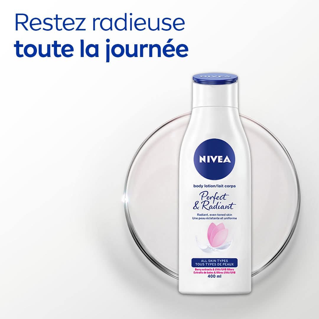 Offrez à votre peau un éclat naturel et uniforme avec le lait corps NIVEA Perfect & Radiant SPF 15.
