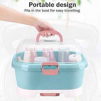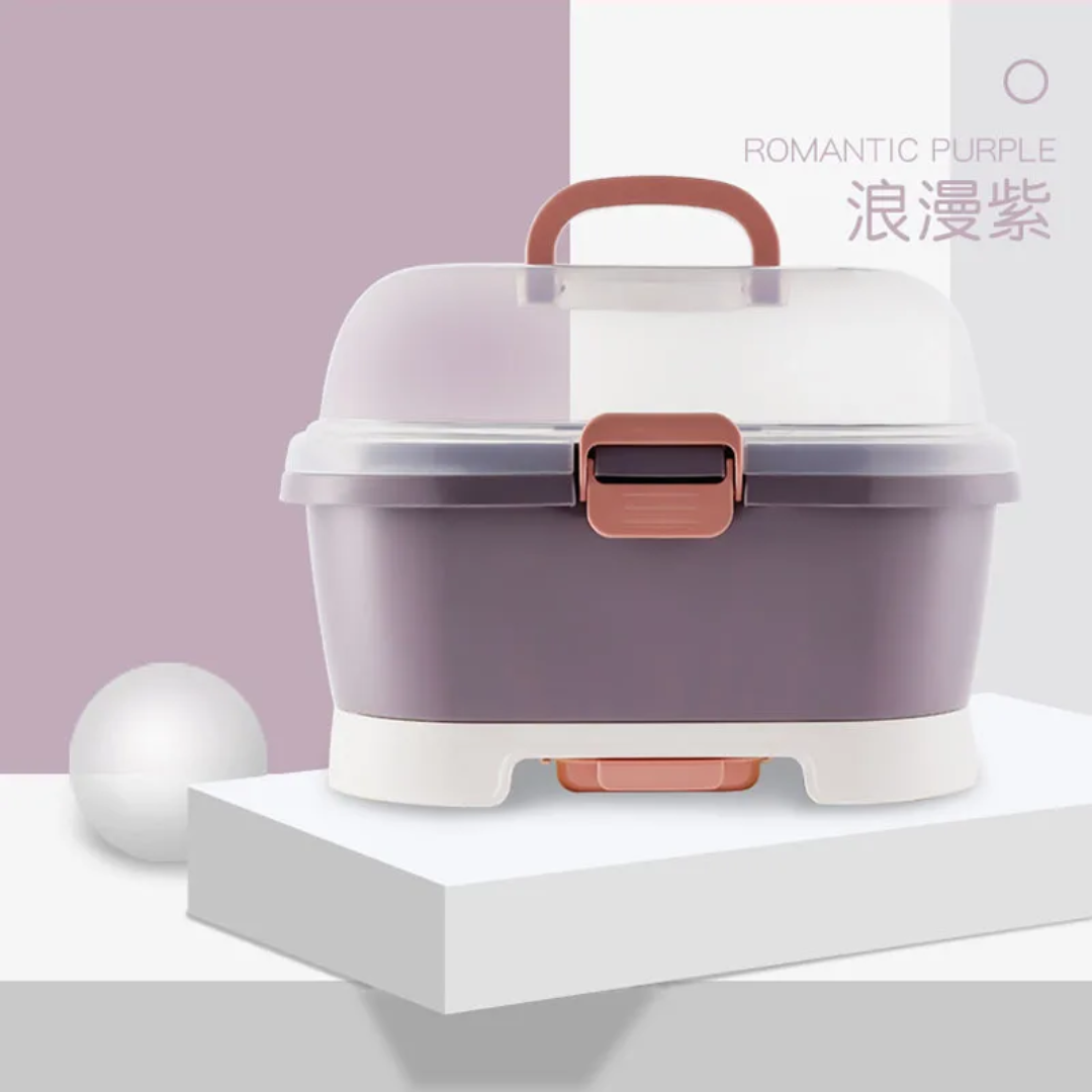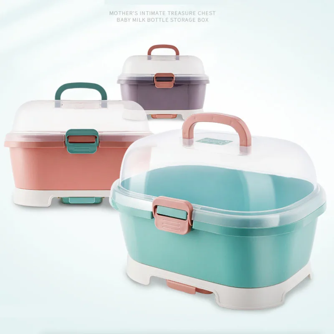 La boîte de rangement multifonction pour biberons est l’accessoire indispensable pour garder les accessoires de bébé propres, secs et parfaitement organisés.