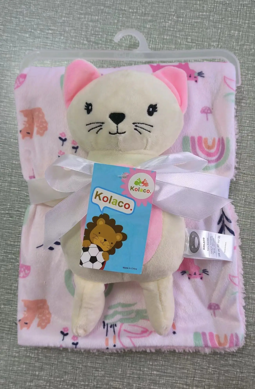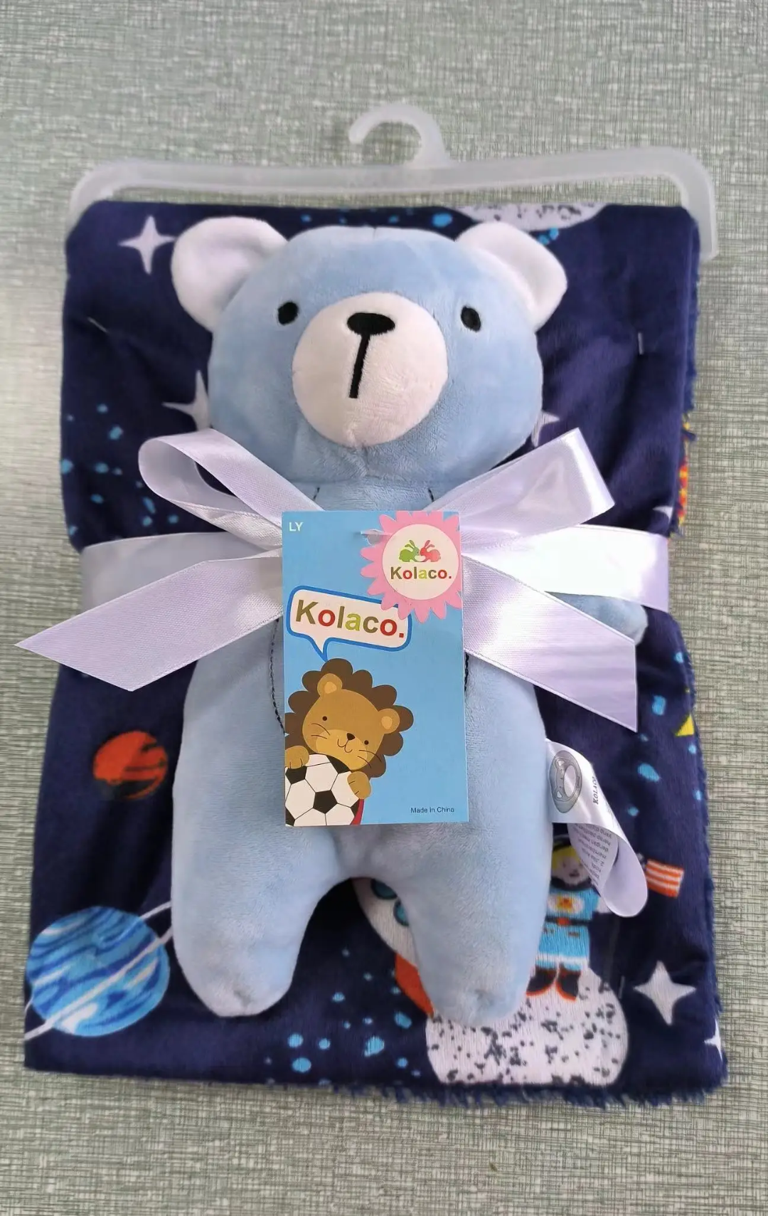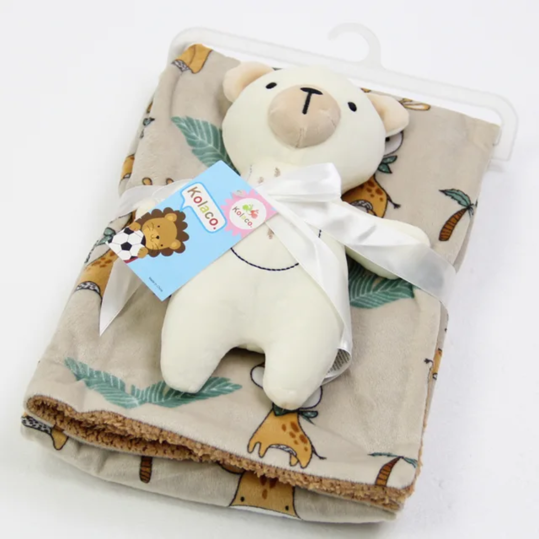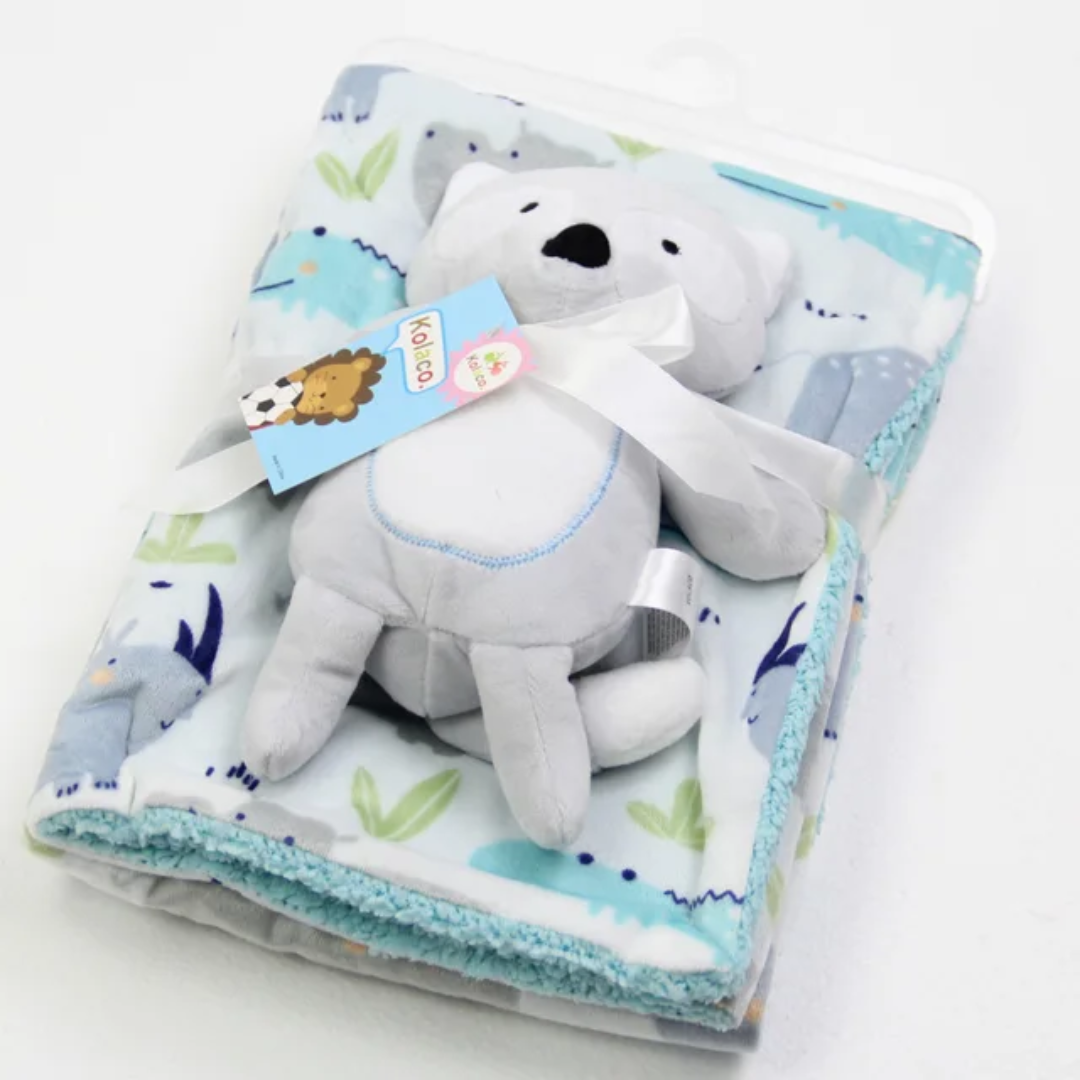 Offrez douceur, chaleur et tendresse avec ce magnifique coffret couverture bébé + peluche Kolaco. Un cadeau parfait pour une naissance, un baptême ou une baby shower.