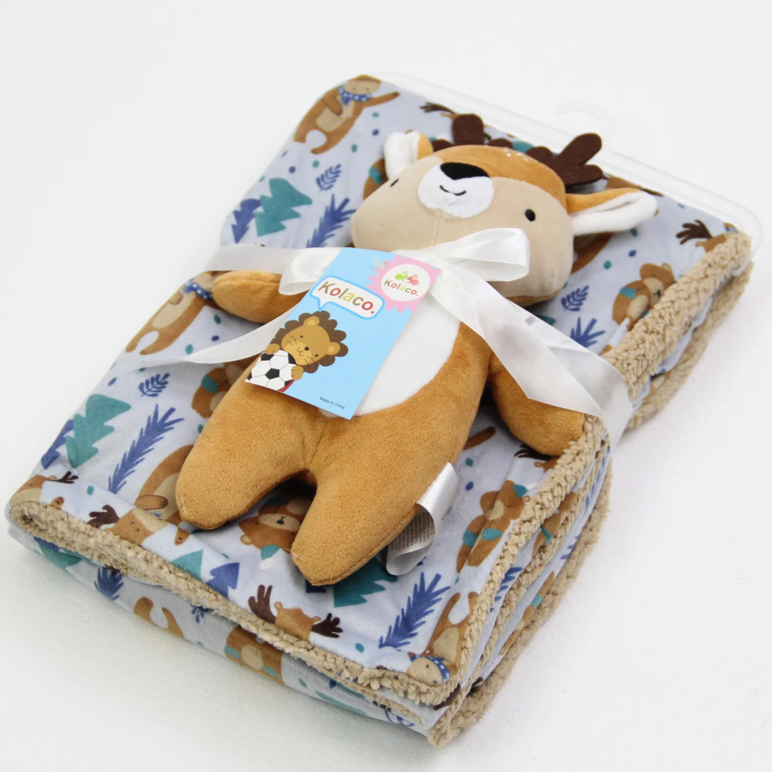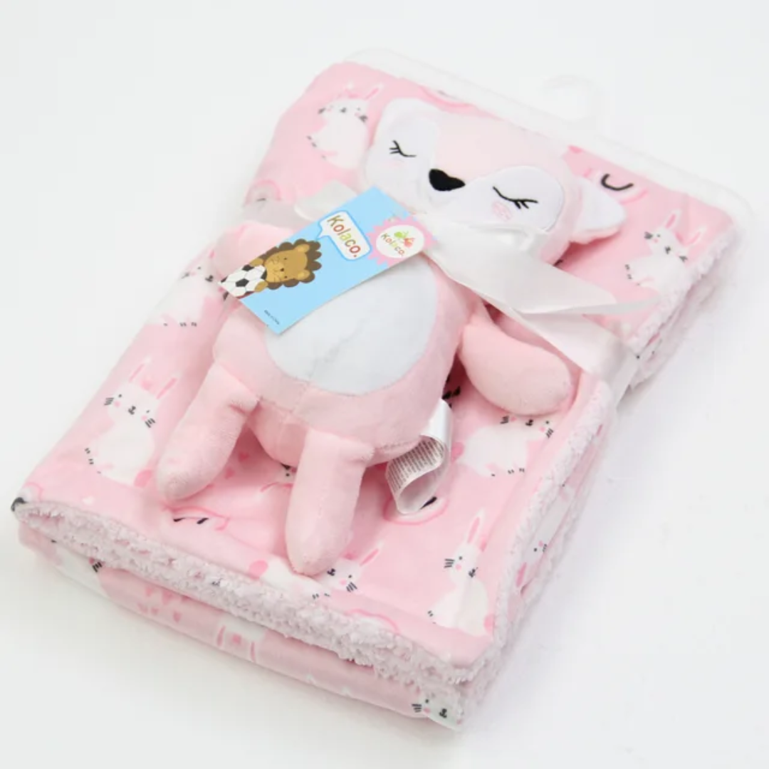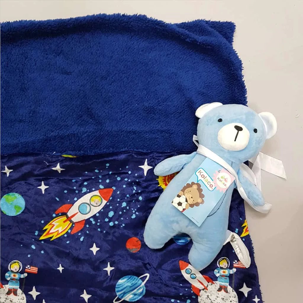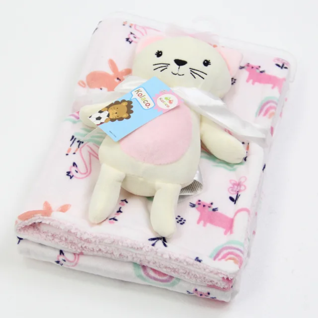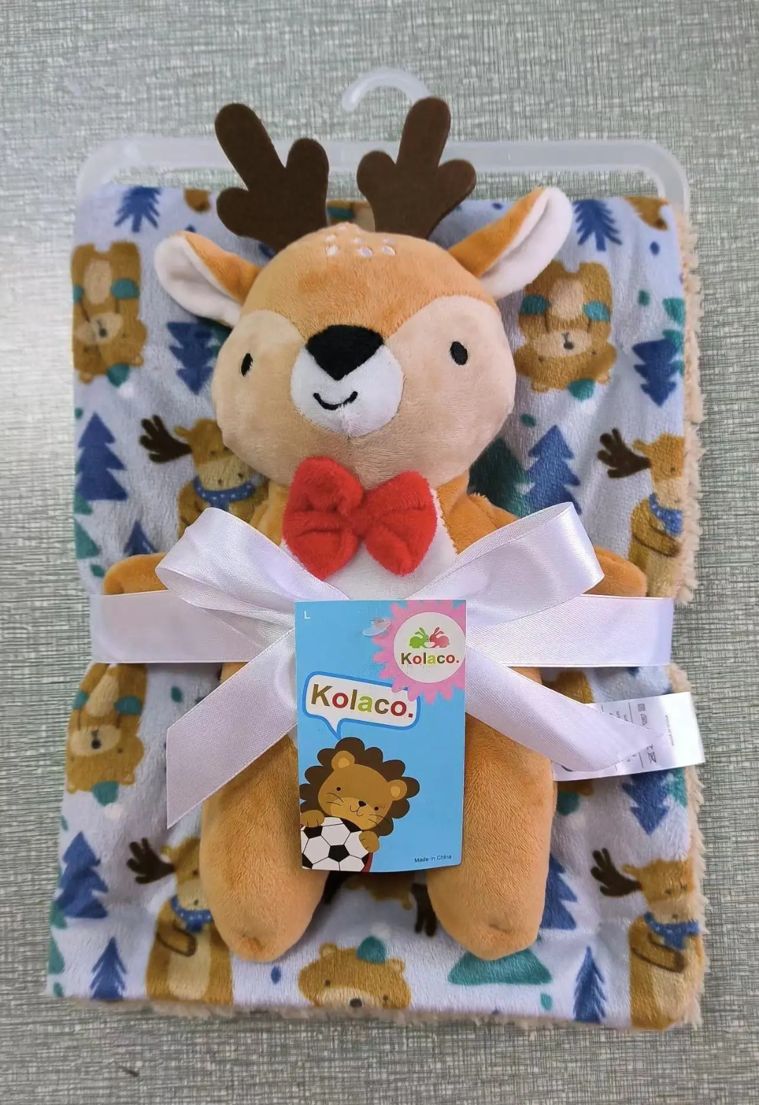 Offrez douceur, chaleur et tendresse avec ce magnifique coffret couverture bébé + peluche Kolaco. Un cadeau parfait pour une naissance, un baptême ou une baby shower.
