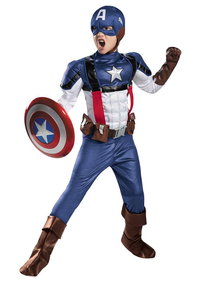 Captain America, à la rescousse e costume de super-héros des Vengeurs est si bien confectionné Les petits super héros vont adorer les muscles pectoraux et les biceps. Comprend une combinaison de luxe et un demi-masque en tissu doux.Ce costume est d’une taille élastique à l’arrière pour un ajustement parfait et de fermetures à boucles et à crochets pour un habillage facile Polyester.