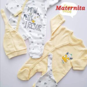 Offrez à votre nouveau-né un ensemble naissance complet, confortable et adorable 🌸👶. Ce set bébé 5 pièces est idéal pour les premiers jours de bébé, à la maternité ou à la maison.