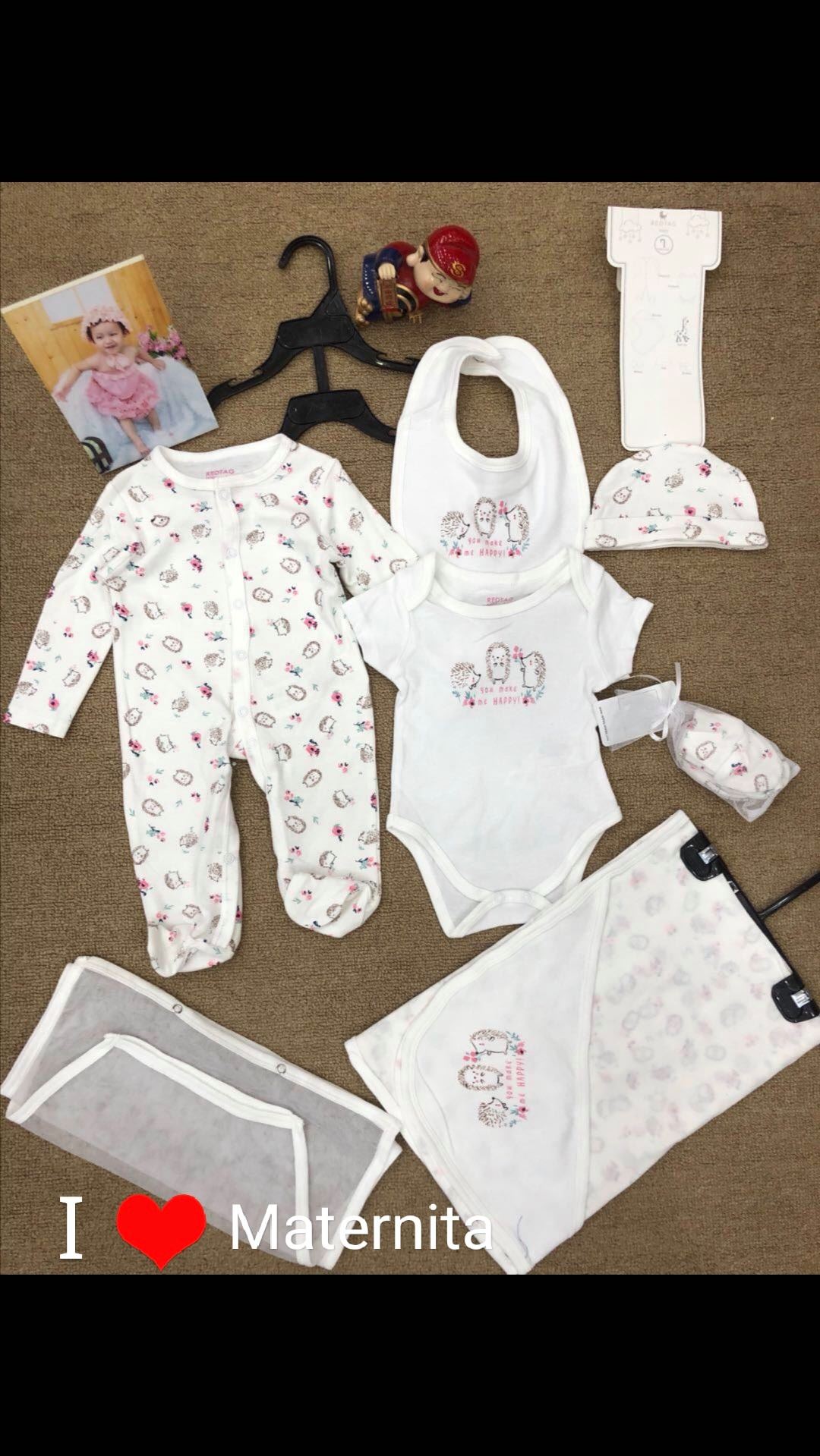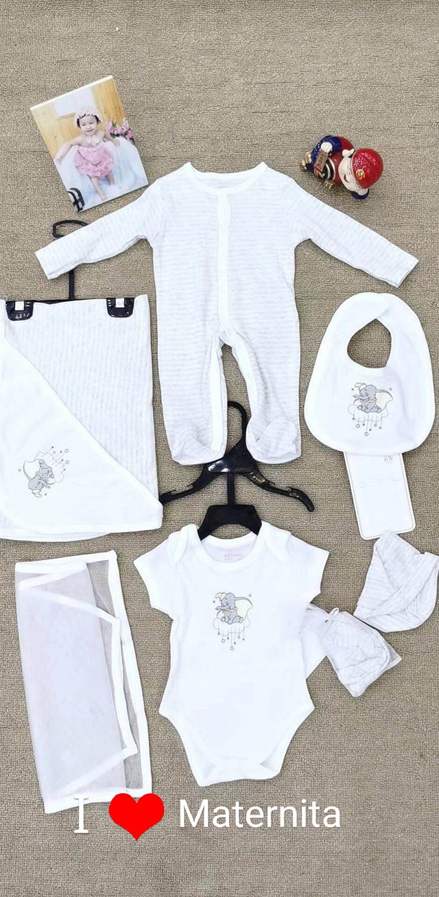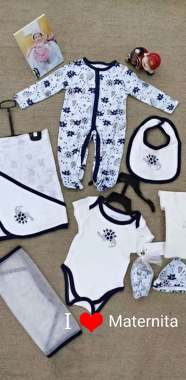 Des ensembles bébé complets 7pièces avec couverture 100% coton. Disponibles dans toutes les Maternita.