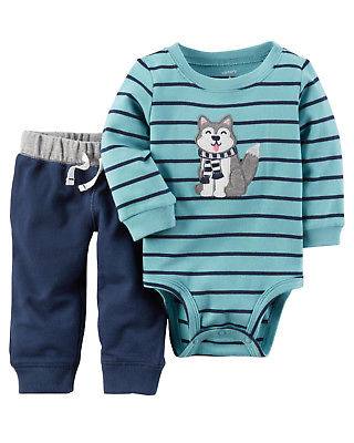 Ce Kit très pratique de marque carters  est une bonne option à porter pour un garçon au quotidien à la maison au moment de ces jeux d’actifs en plein air ou pour une promenade avec ces parent.L’ensemble comprend un corps de manche longues avec des pressions un pantalon en élastique à la ceinture de même que l’insert au bas de la jambe disponible de la naissance à 24mois avec plusieurs motifs et couleurs
