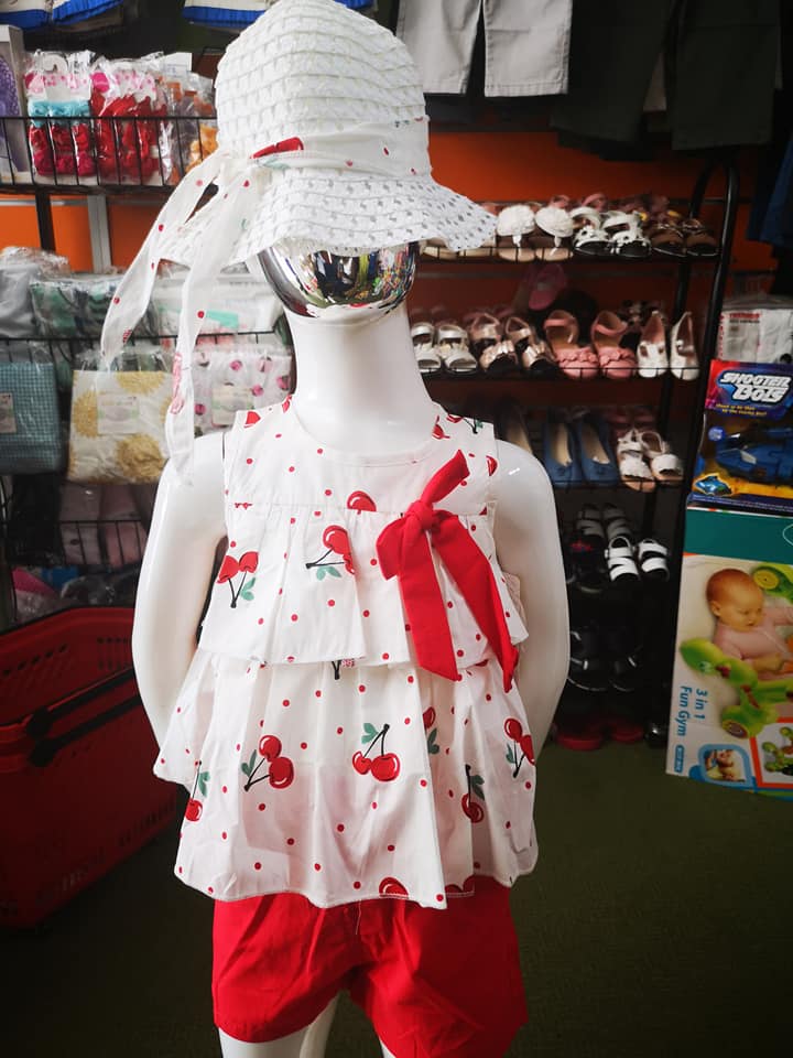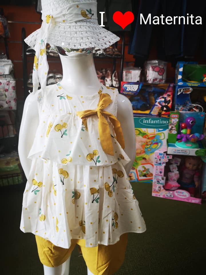 Ensemble été fille 3 pièces coton sans manches avec robe avec fleur au coté ou  devant + short + chapeau très adéquate à porter pour les petites sorties,familiales ou pour la maison disponibles en plusieurs modèles et tailles.
