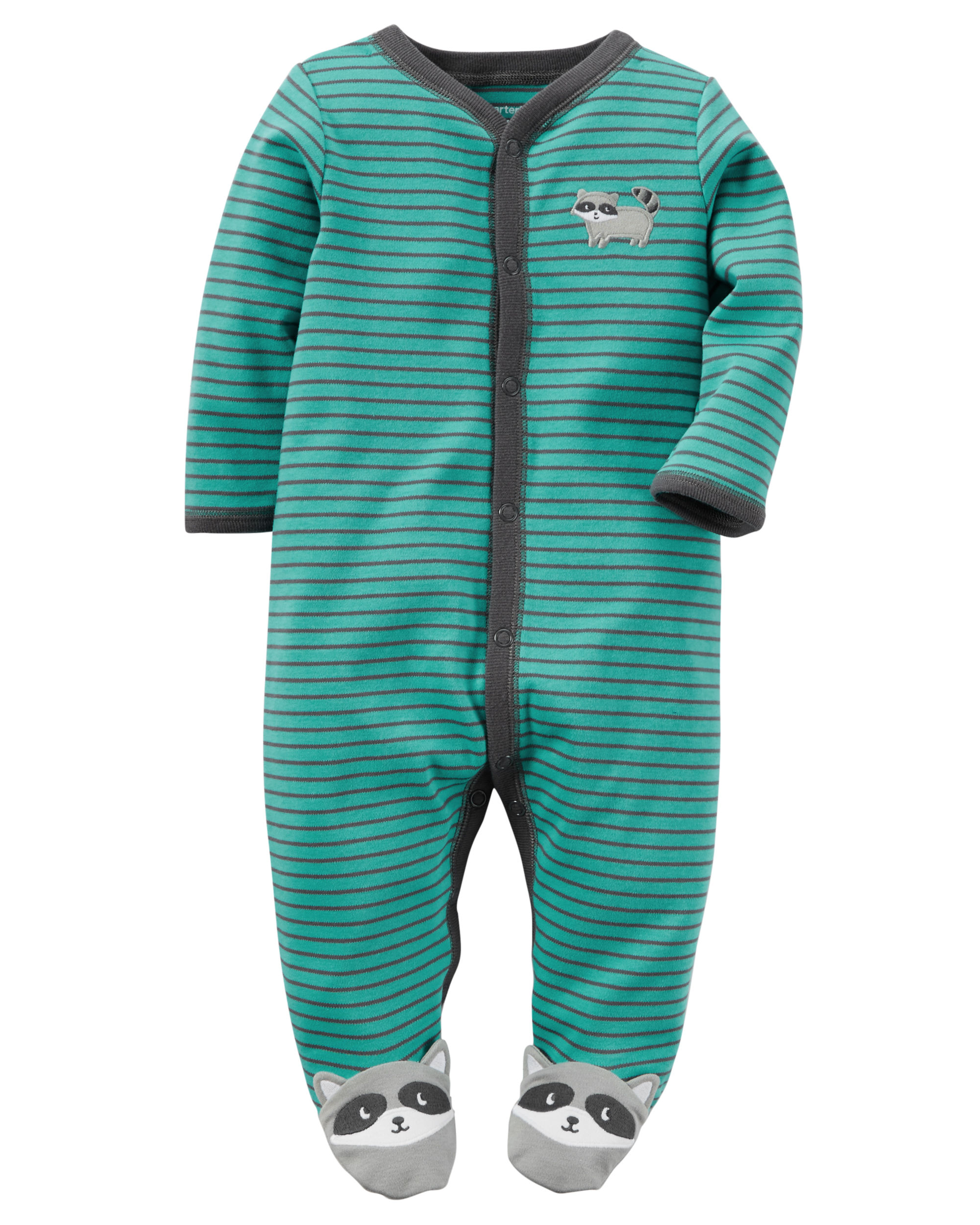 grenouillere carters en 100%coton rayures vertes grises . ouverture devant