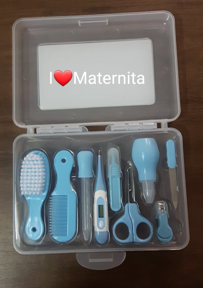 Kit de soin bebe complet avec sa pochette disponible dans toutes les Maternita.