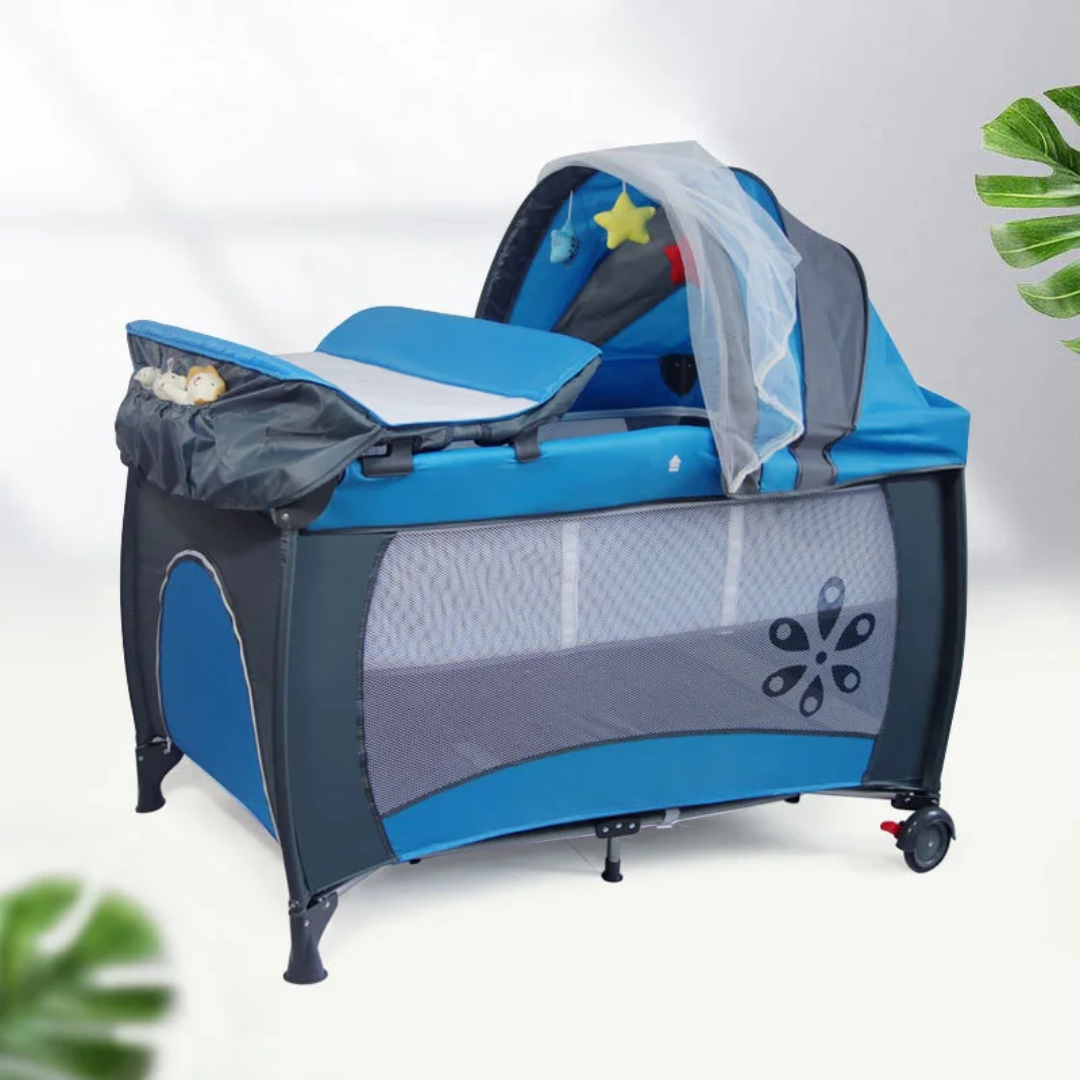 Idéal pour la maison comme pour les déplacements, ce lit bébé combine couchage, table à langer et espace de jeu dans un seul équipement compact et facile à transporter.