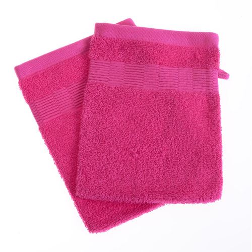 Lot de 2 gants de toilette unis en éponge, 100% coton.