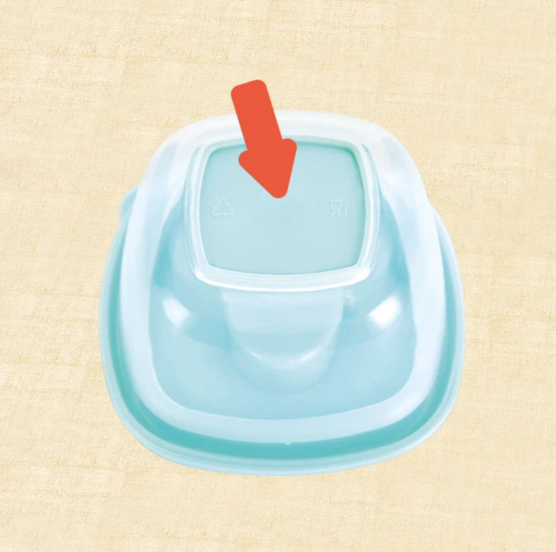 Le couvercle est équipé d’une valve d’aération intégrée, permettant de réchauffer les aliments au micro-ondes en toute sécurité (ouvrir la valve avant chauffage).