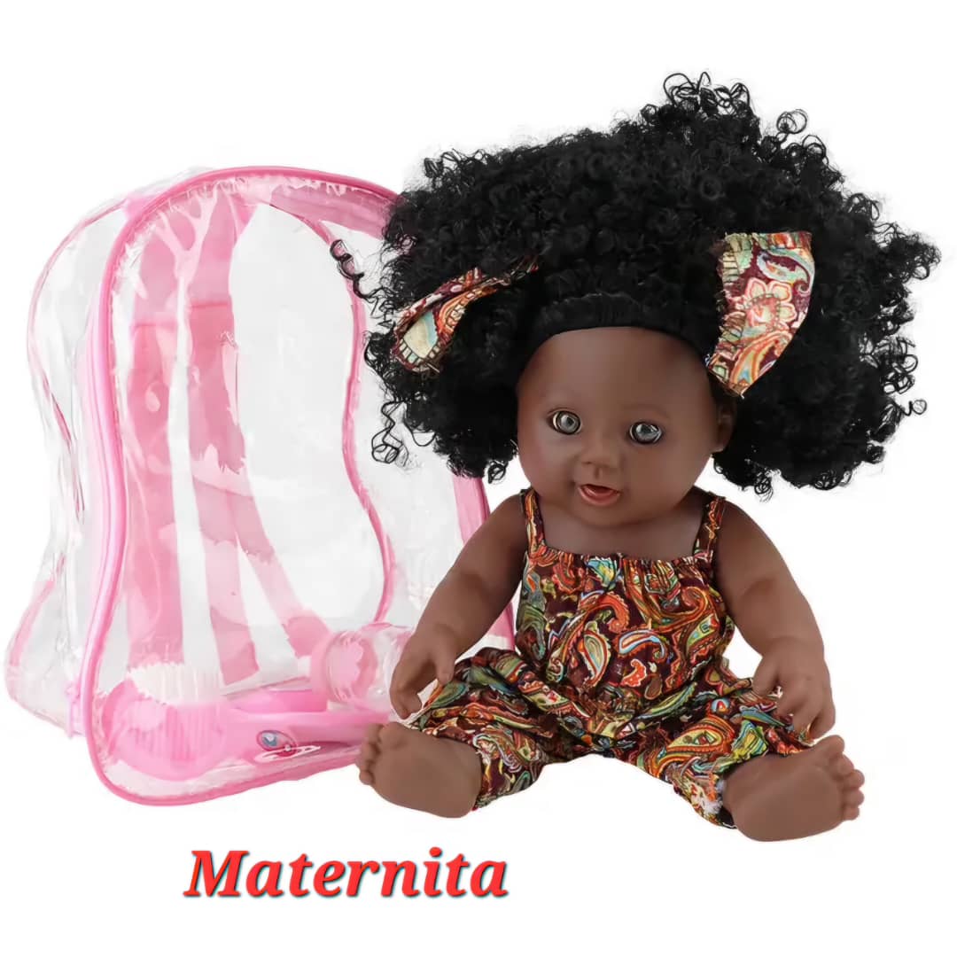 poupée brune avec des boucles douces – cheveux crépus – poupée africaine – poupée noire – peau sombre – belle – poupée noire