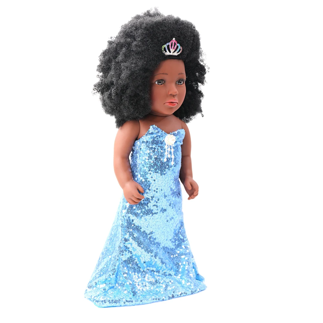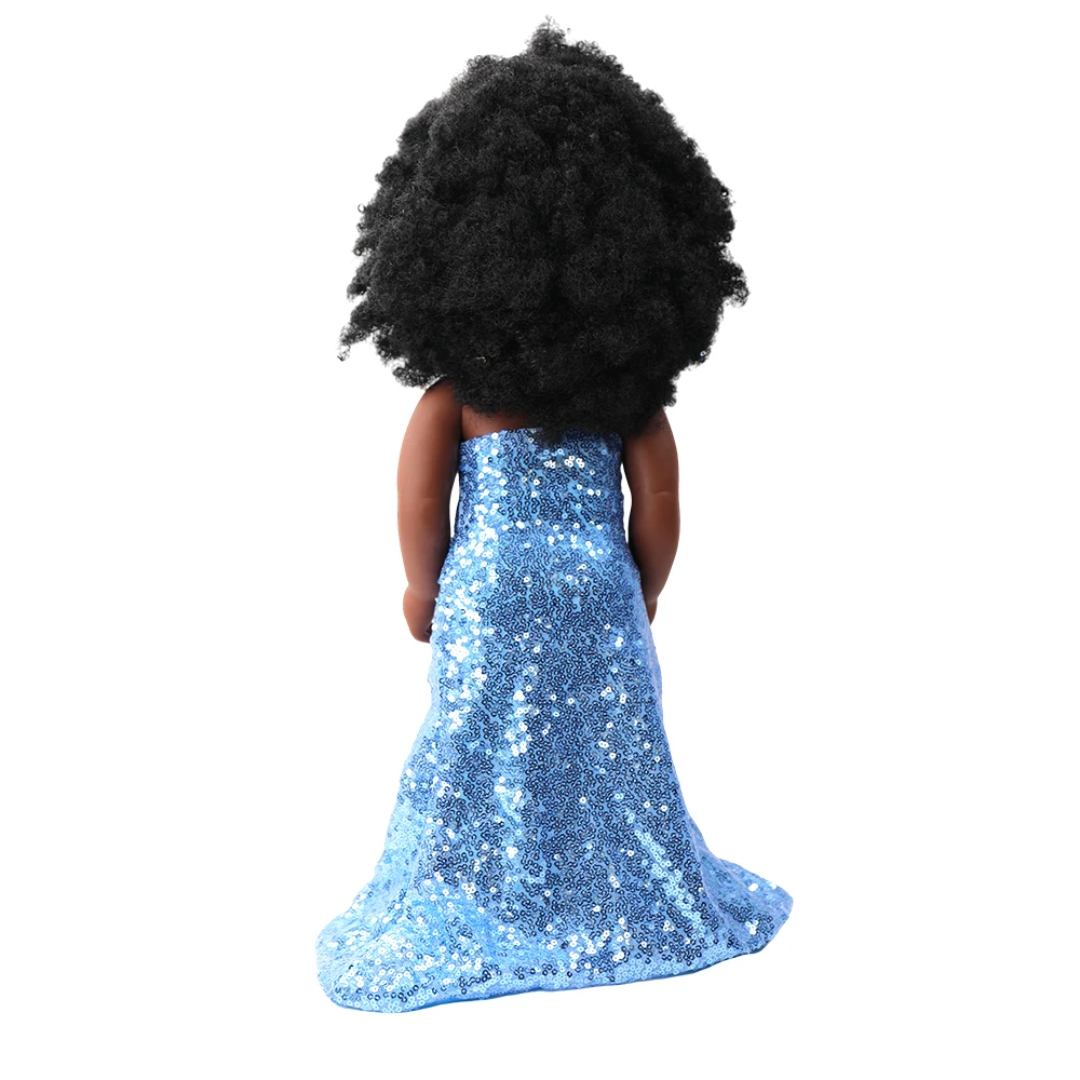 Offrez à votre enfant une poupée unique et élégante avec cette magnifique poupée princesse afro habillée d’une somptueuse robe longue bleue pailletée.