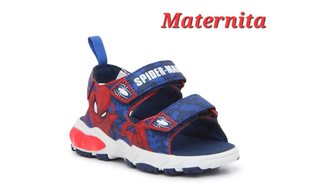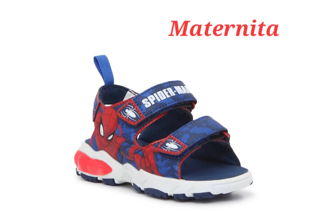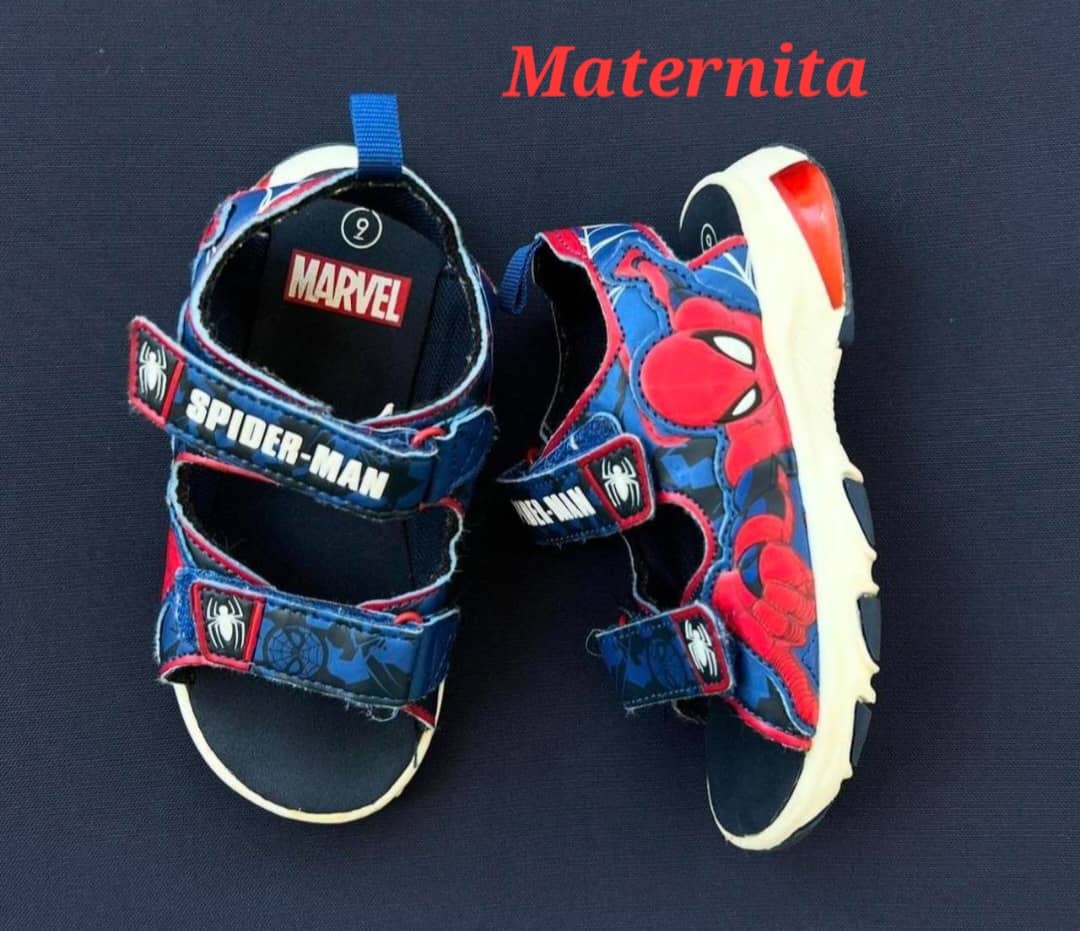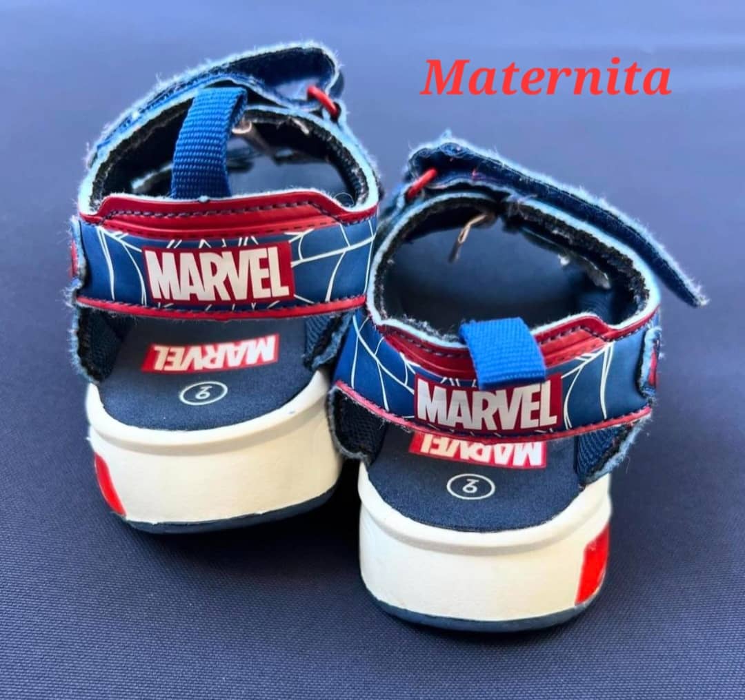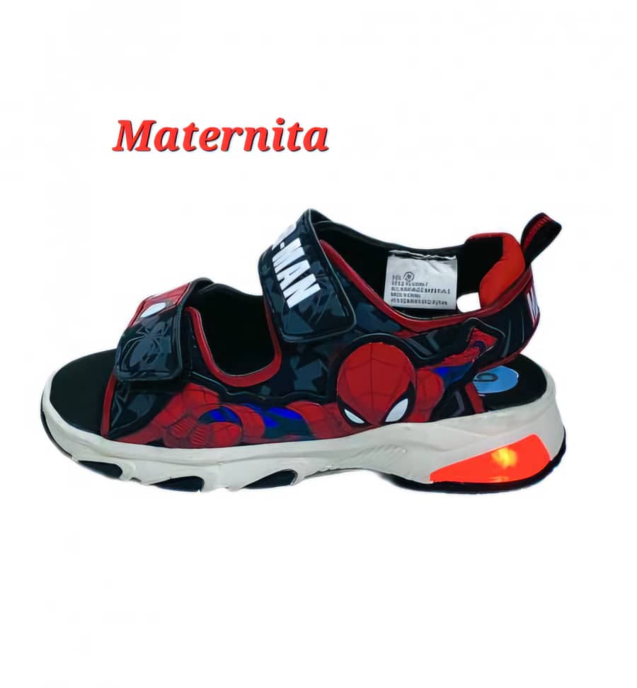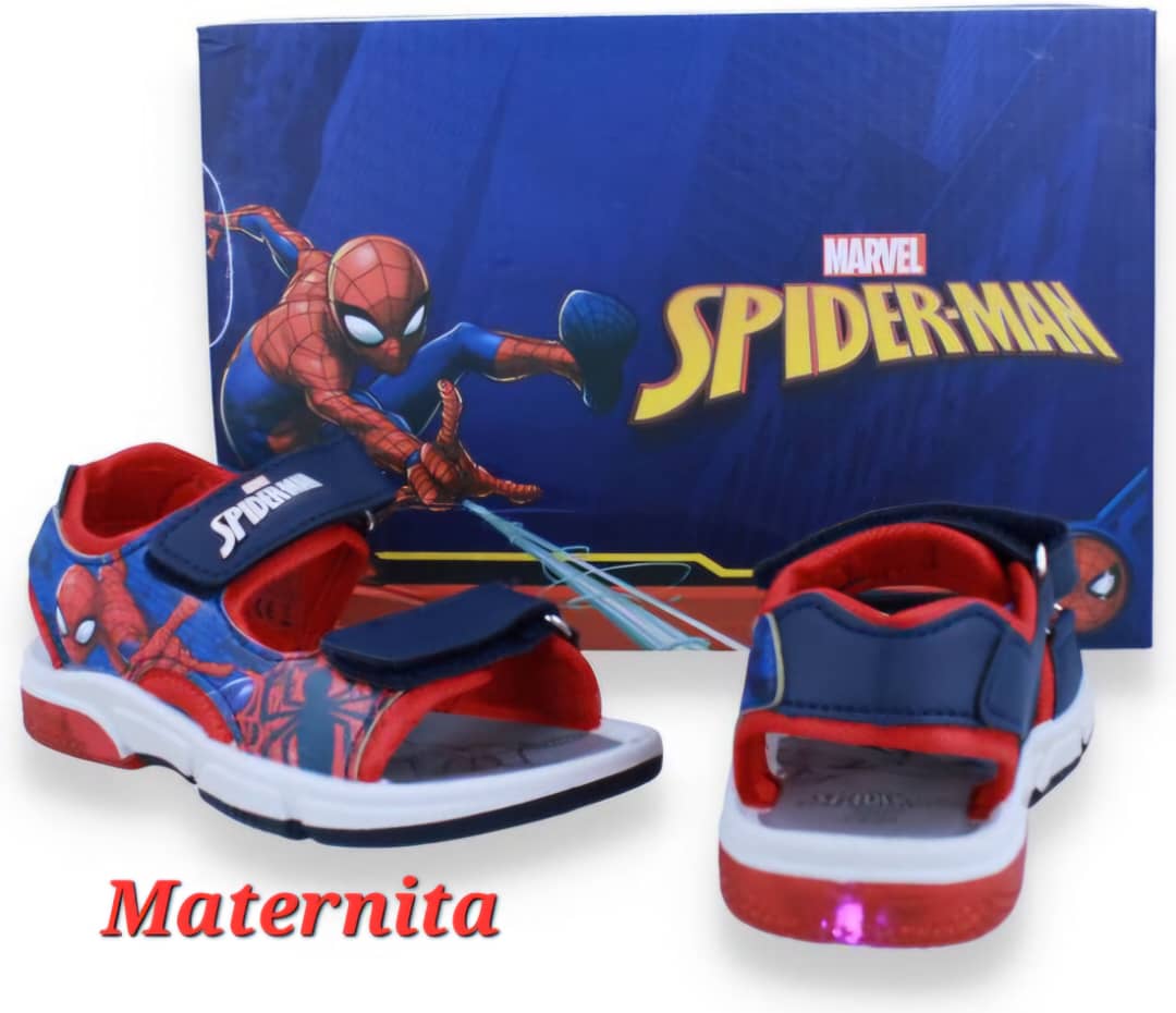 Sandales ‘Spider-Man’ de ‘Marvel’ – En simili – Ouverture par scratchs – Doublure en tissu – Semelle de propreté en simili – Semelle d’usure lumineuse antidérapante