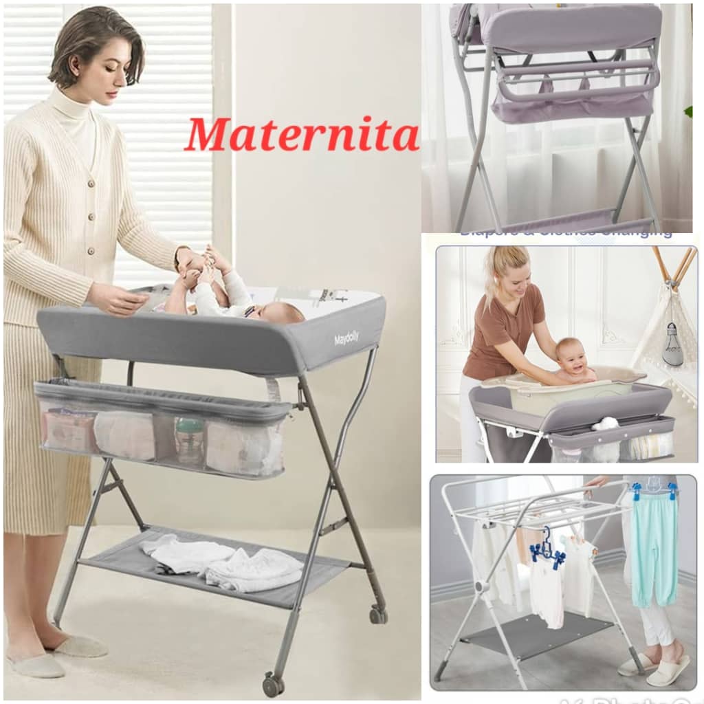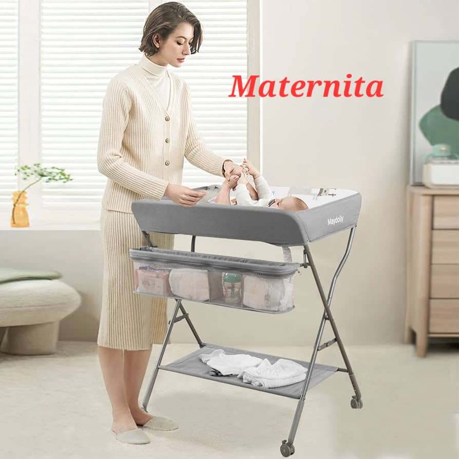 Table à langer pour bébé, station à langer portable et pliable avec roulettes, organisateur de chambre d’enfant mobile à hauteur réglable avec ceinture de sécurité et grands supports de rangement pour nouveau-né et nourrisson.