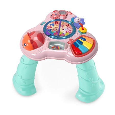 nLe plaisir vient en premier vos bébé ne manquera jamais de nouvelles choses à faire et à apprendre avec la table d’apprentissage musicale Pretty in Pink! Du doux piano au livre de personnages amusant en passant par la coccinelle peek-a-boo, cette table d’activités grandit avec bébé et offre des heures de divertissement pour votre tout-petitnn