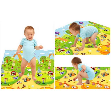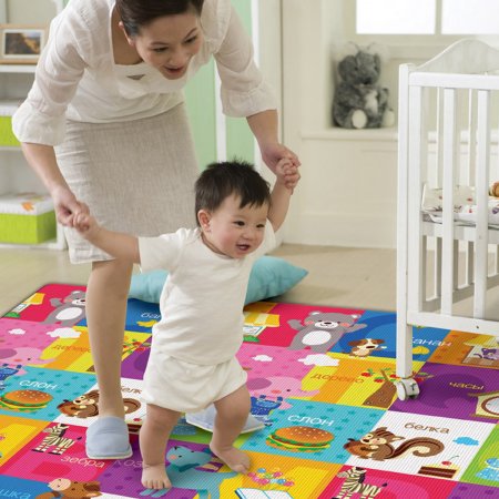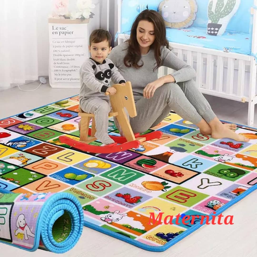 Ce tapis est trés pratique . C,est l’idéal pour un enfant qui apprend a marcher a 4pattes ou sui fait ses premiers pas. Il est tres large matelassé avec des dessins et des couleures qui eveillent bebe. Ne retient ni leau ni la poussiere et lavable .bebe peut tomber sans risque de se blesser.