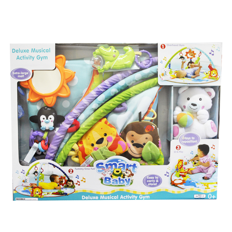 - Tapis d’eveil musical SMART BABY avec son doudou musical, et ses arches, maman peut facilement déposer bébé sur le tapis. n