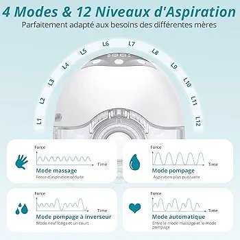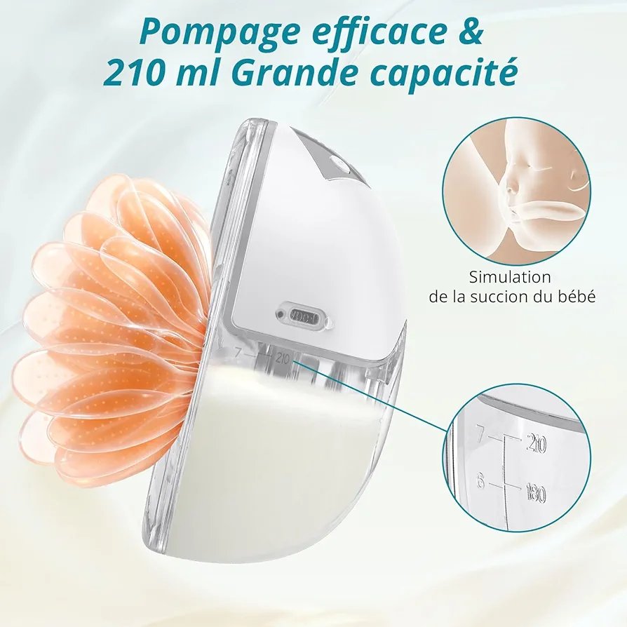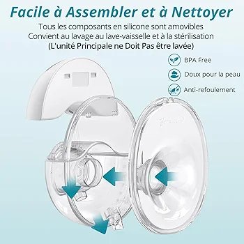 Design mains libres et discret : se place directement dans le soutien-gorge pour tirer le lait sans utiliser les mains.
